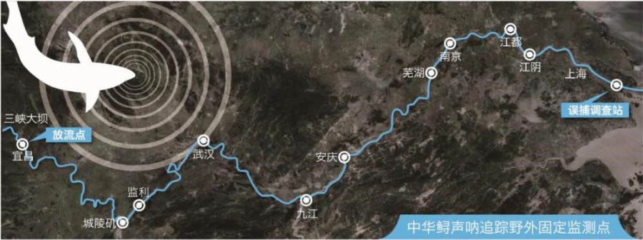 布设监测设备的作用是当中华鲟从该江段游过,科研人员可以接收到它身上的声呐信号,从而追踪、计算每次放流的中华鲟在各个江段的数量分布情况,分析其沿江的生存状况及受威胁因素,评估其最终的入海率。